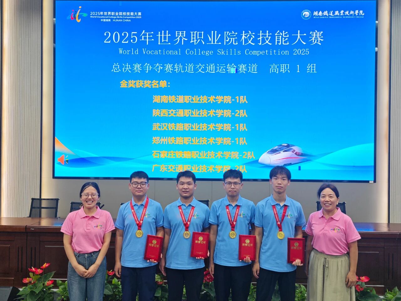 8月28日至31日,2025年世界職業(yè)院校技能大賽總決賽爭奪賽軌道交通運輸賽道(高職組)在湖南舉行。經(jīng)過激烈比拼,石家莊鐵路職業(yè)技術(shù)學院軌道交通系兩支代表隊在眾多強勁對手中脫穎而出,分別斬獲金獎和銅獎